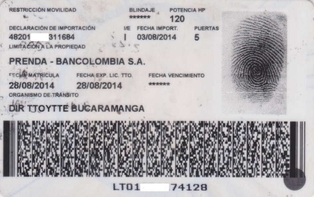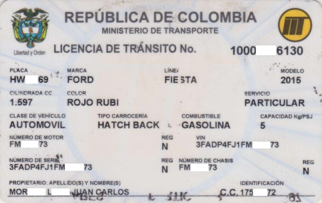 La licencia de tránsito (también conocida como tarjeta de propiedad) contiene toda la información oficial del vehículo: